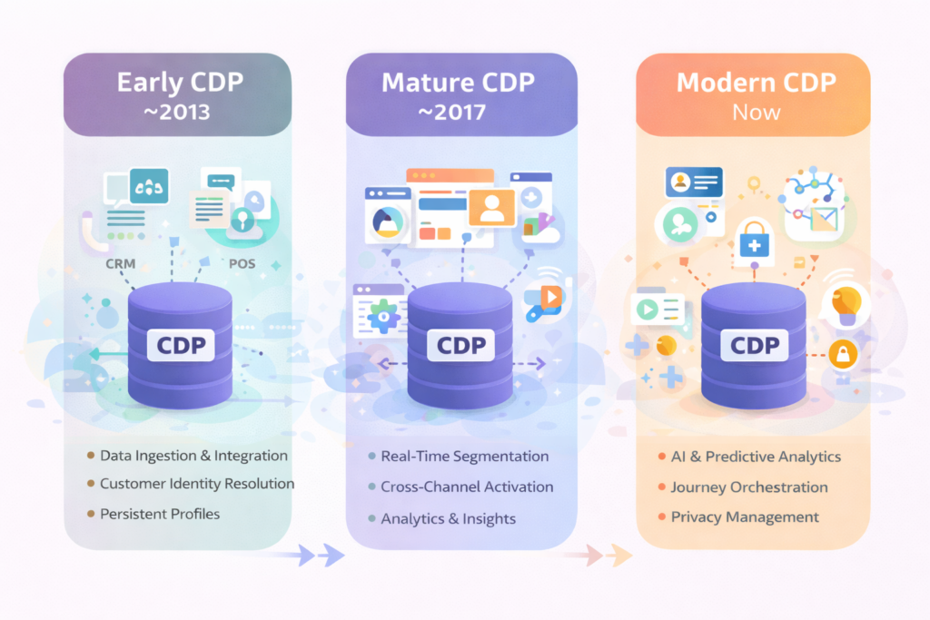 | ยุคแรก CDP (~2013–2016) | Data Integration, Identity Resolution, Unified Profiles |